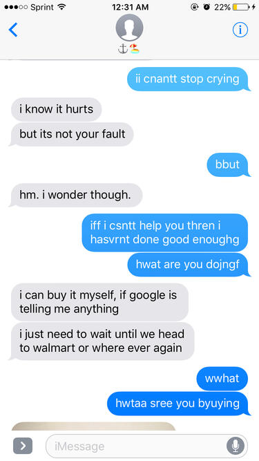 -They once unprompted sent me a picture of their self harm. Take my word on this one, please. This happened years ago and I was not in a position to screenshot somebody's bloody sliced up arm. I feel sick just remembering it.